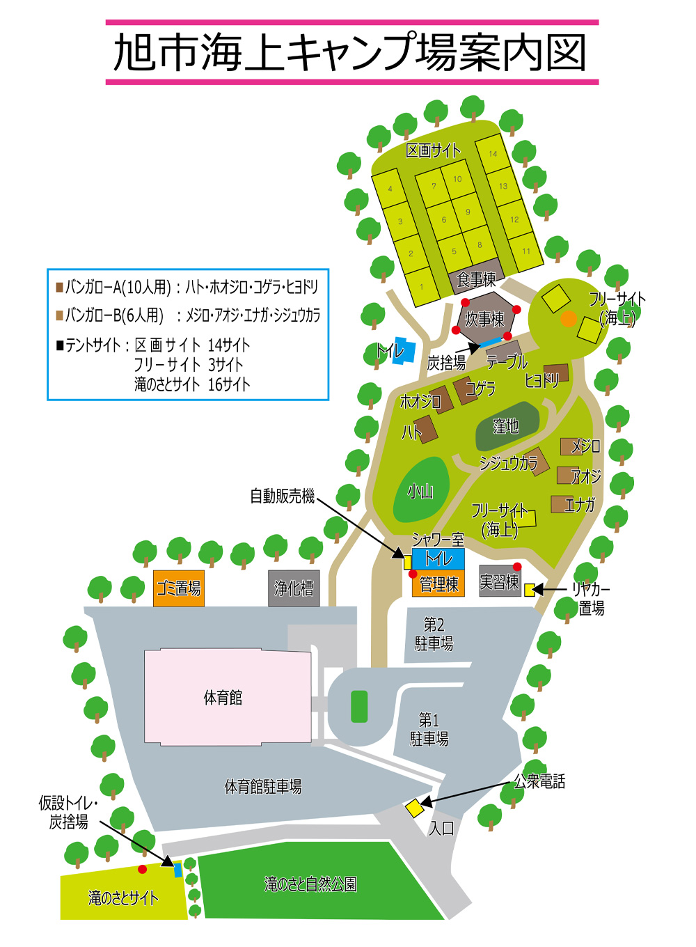 - キャンプファイアーを行うときは、事前に管理事務所に申し出て、消防署への連絡を怠らないようにしてください。